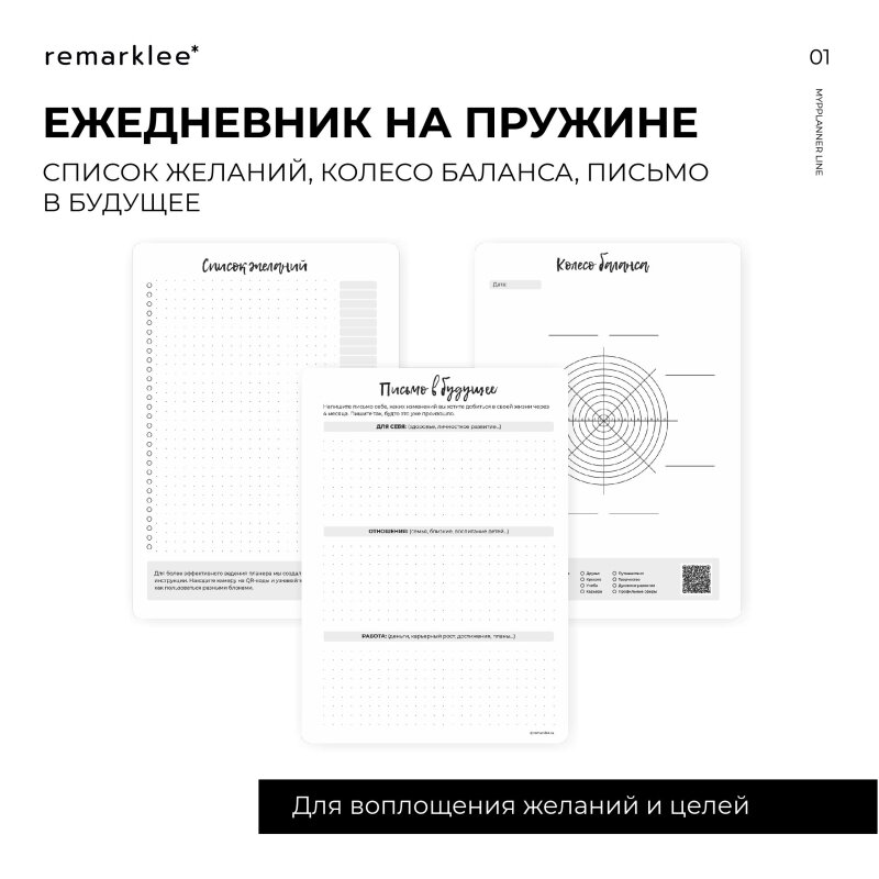 И это еще не всё: в планере есть календарь на месяц, трекер привычек, письмо в будущее, колесо баланса и многое другое.