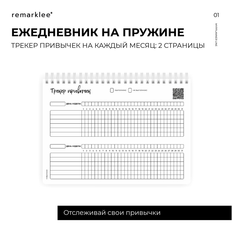 - развороты на месяц 8 стр.; - трекеры привычек 2 стр (по 2 трекера на каждой стр.);