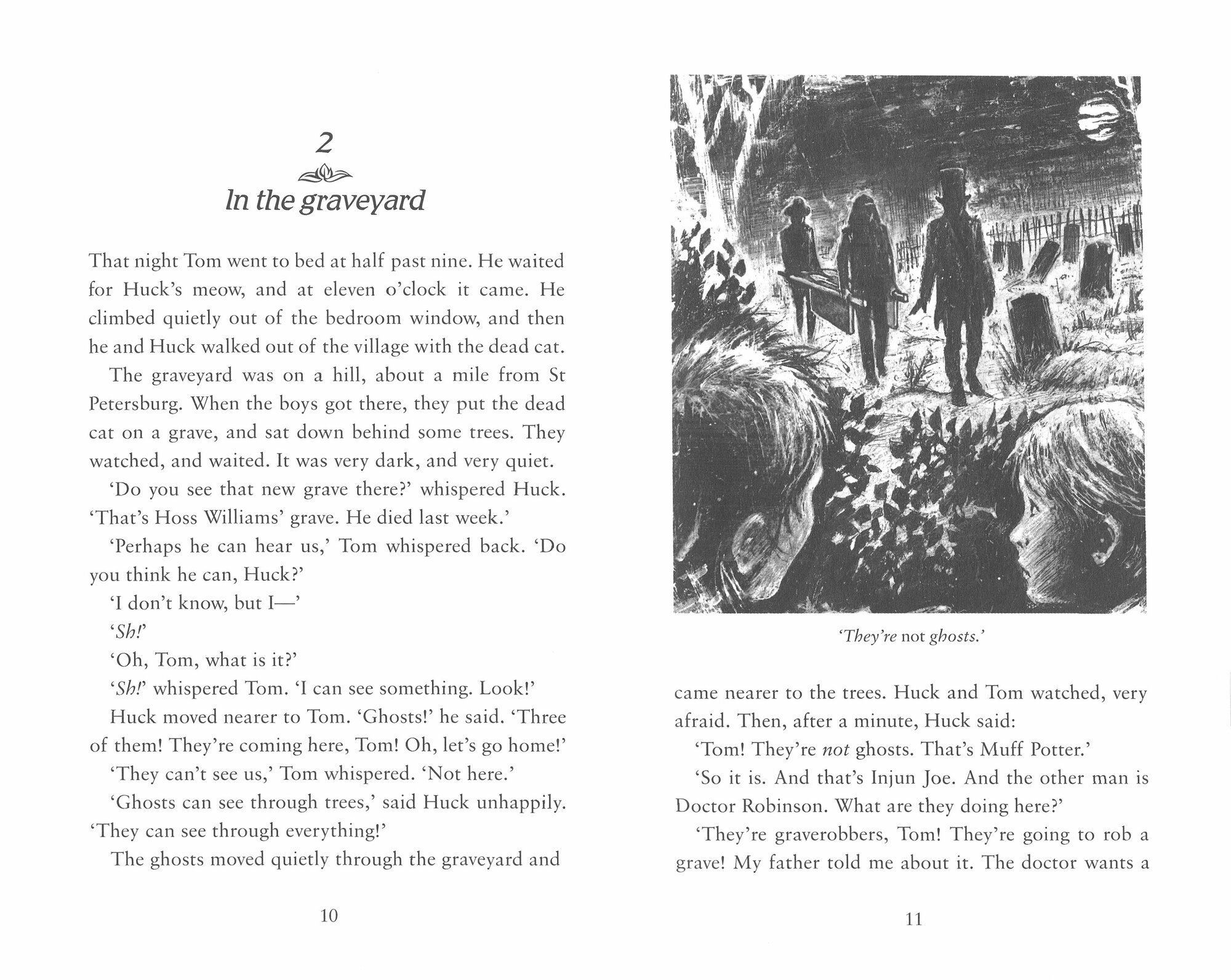 Tom Sawyer does not like school. He does not like work, and he never wants to get out of bed in the morning. But he likes swimming and fishing, and having adventures with his friends. And he has a lot of adventures. One night, he and his friend Huck Finn go to the graveyard to look for ghosts. They don't see any ghosts that night. They see something worse than a ghost - much, much worse...