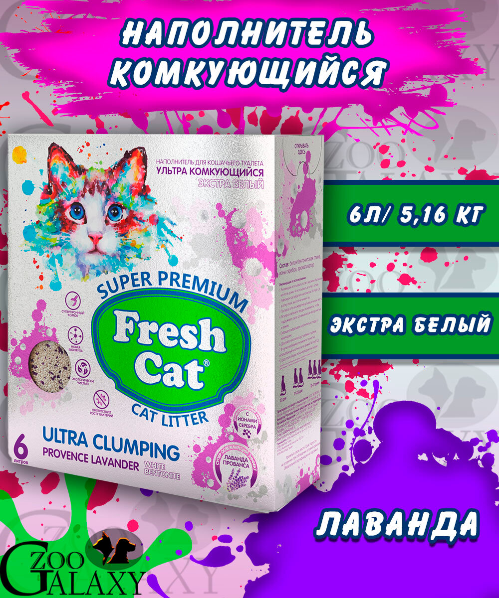 Наполнитель для кошачьего туалета Fresh Cat Лаванда прованса комкующийся 6л
