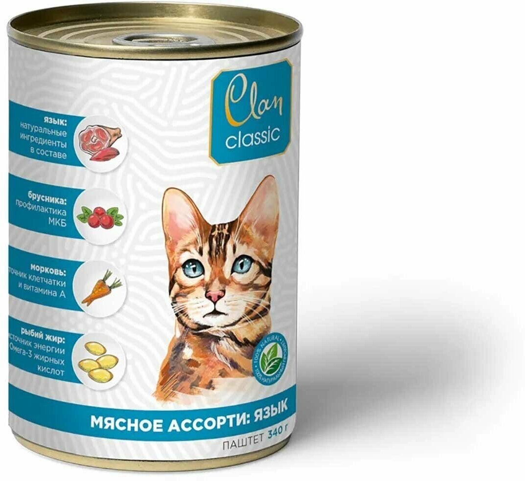Влажный корм для кошек Clan Classic Язык 100г Елецкий МК