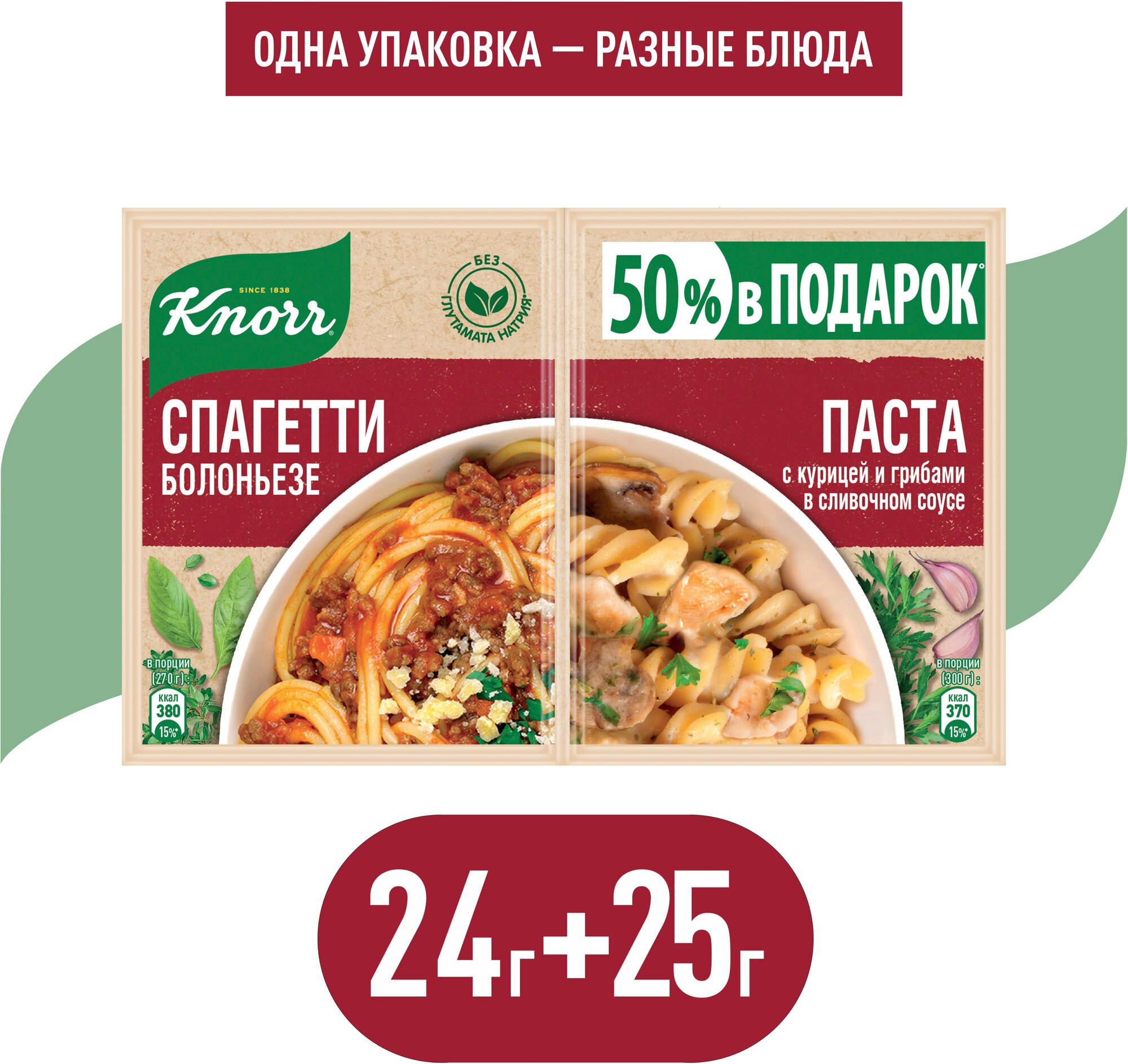 Сухая смесь Knorr Спагетти Болоньезе + Паста в сливочном соусе с курицей и грибами 49г КДВ Тула