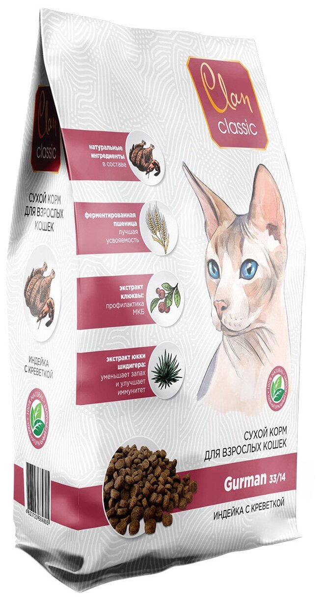 Сухой корм для кошек Clan Classic Индейка креветка 1.25кг Мелькомбинат