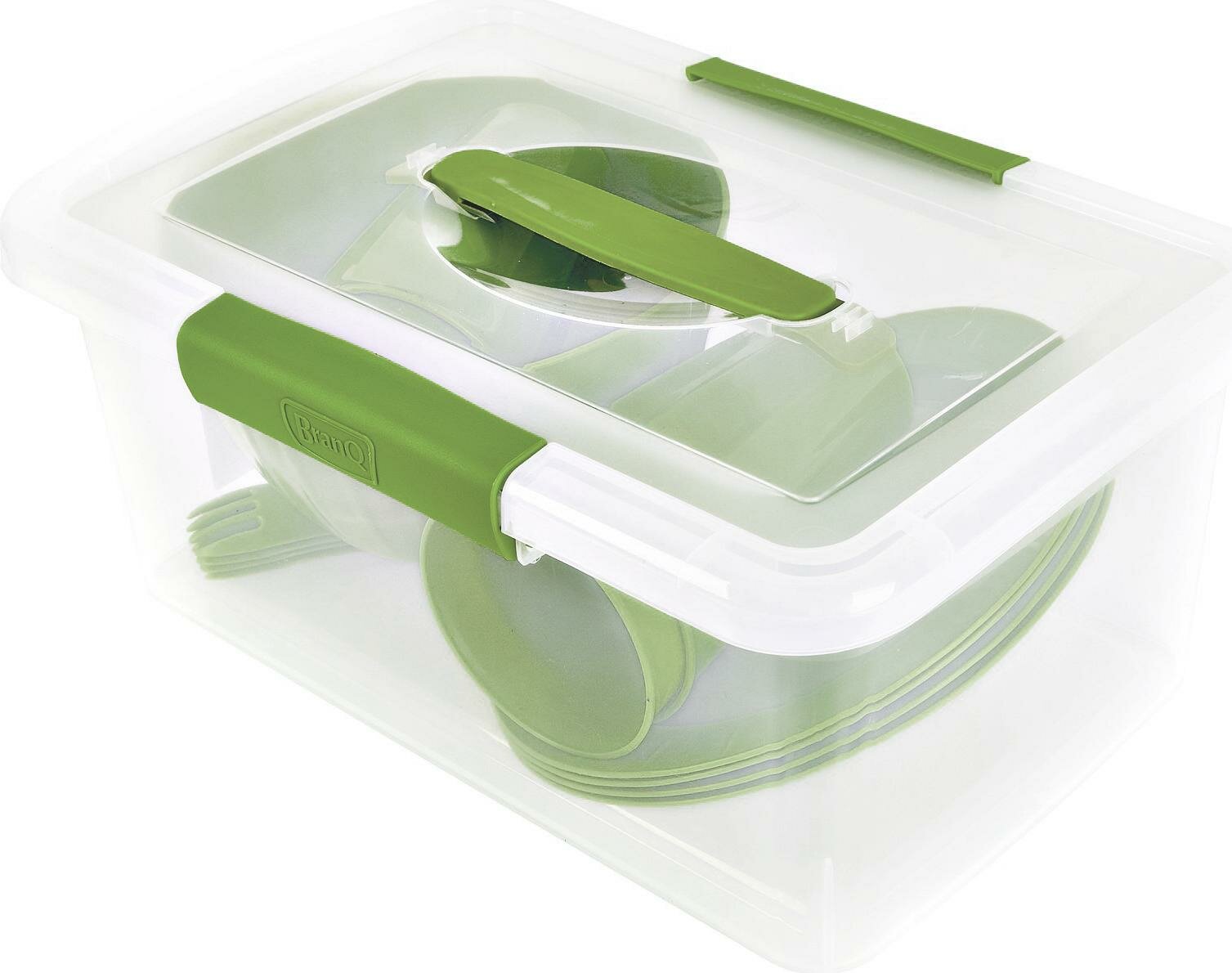 | Состав набора | салатник объемом 1,7л, порционная тарелка - 4шт, салатник объемом 0,6л - 4 шт., вилка - 4шт. контейнер с ручкой -1шт. |