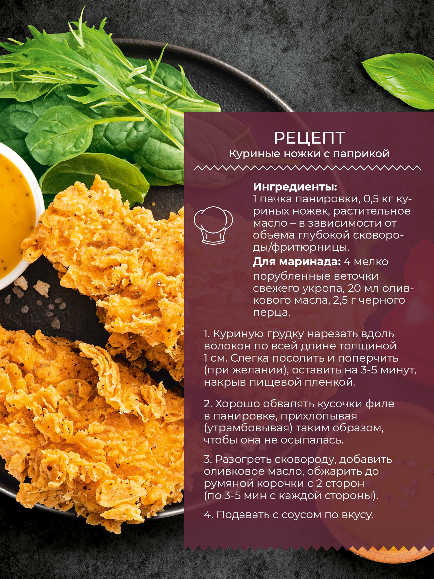 Crispy панировка со сладкой паприкой Yelli сhef идеально подходит для приготовления хрустящих куриных крылышек, ножек и куриного филе. Для этого вам потребуется немного масла, сотейник или глубокая сковорода. Насладитесь вкусом и ароматом сочной курочки в хрустящей панировке с паприкой!