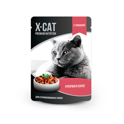 Влажный корм для стерелизованных кошек X-CAT Говядина в соусе 85г ИП Михайлова М.В.