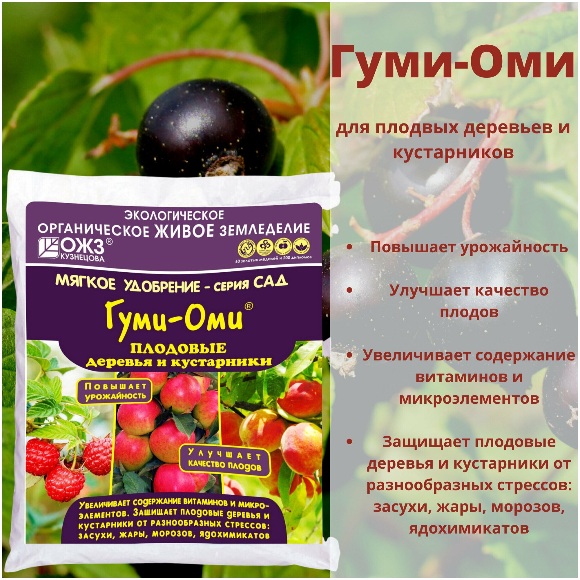 Порошково–гранулированное удобрение с необходимыми для питания плодовых деревьев и кустарников макро- и микроэлементами и эликсиром плодородия Гуми. Повышает урожайность, плодородие, улучшает структуру почвы и улучшает качество продукции.