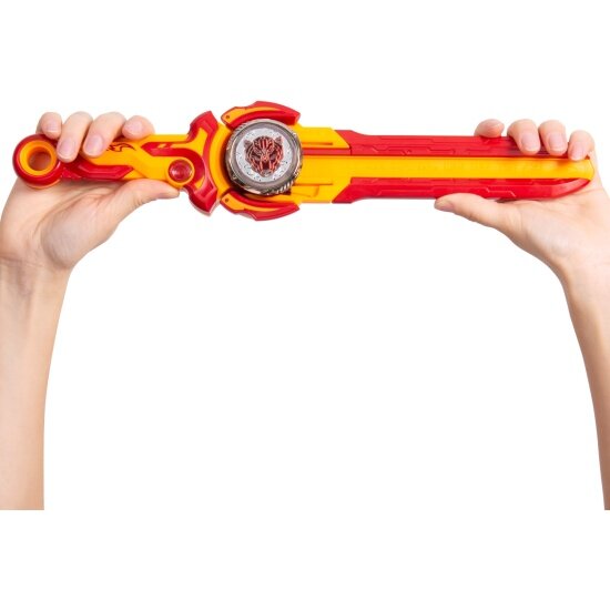 Он помогает точнее запустить блейд на арену. Меч не только пусковая установка, но и монтажный инструмент. В комплект входит облегченный волчок для скоростного запуска. Его можно пересобирать: все элементы взаимозаменяемы внутри линейки Эпик Лончер. Вставь Надо в специальное отверстие до щелчка, раскрути волчок с помощью ножен, нажми кнопку запуска. Блейд Эпик Лончер Стандарт светится при вращении и нажатии на аватар.