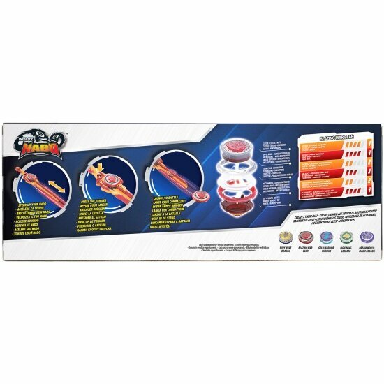 В наборе: пусковая установка Эпик Лончер Стандарт, металлический светящийся волчок, монтажный инструмент, 3 батарейки LR41/AG3 (напряжение 1.5V), входят в комплект. Батарейки замене не подлежат.