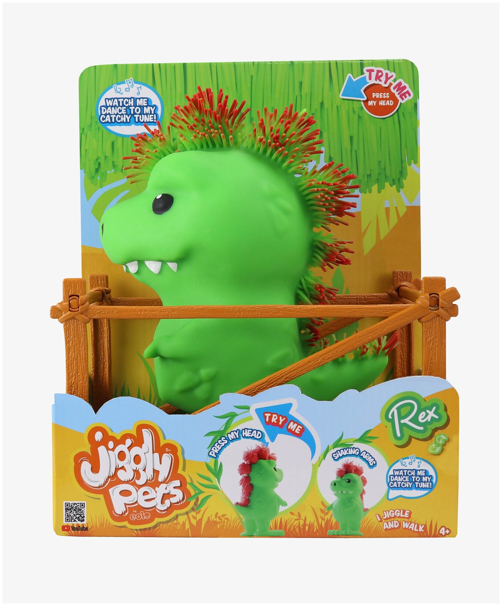 Почувствуйте весёлую встряску с Джигли Петс! Встречайте быстрого, дерзкого и отвязного динозавра Рекса. Этот интерактивный питомец не даст вам заскучать, потому что обожает рычать и танцевать!