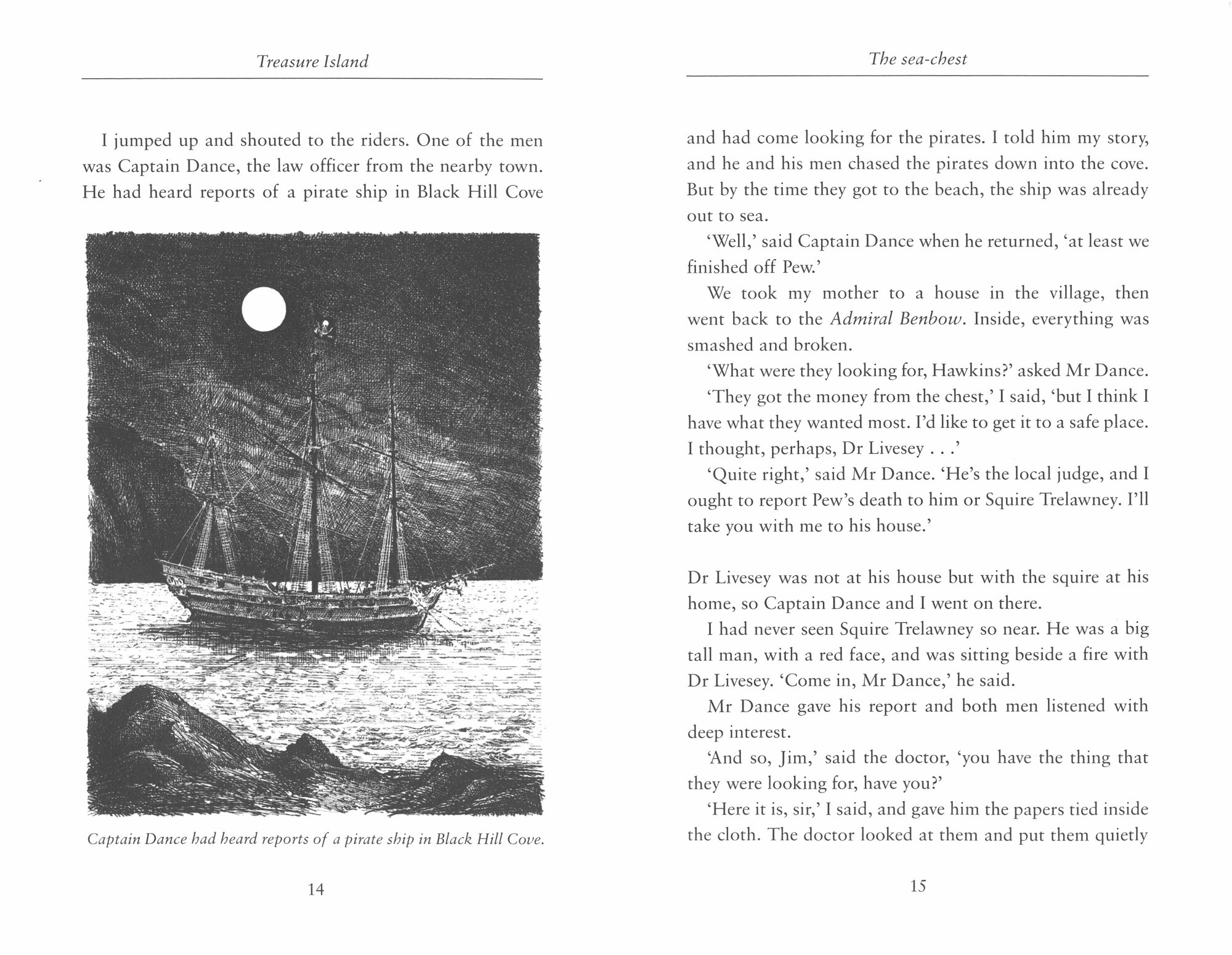 Suddenly, there was a high voice screaming in the darkness: "Pieces of eight! Pieces of eight! Pieces of eight!" It was Long John Silver's parrot, Captain Flint! I turned to run... ' But young Jim Hawkins does not escape from the pirates this time. Will he and his friends find the treasure before the pirates do? Will they escape from the island, and sail back to England with a ship full of gold?