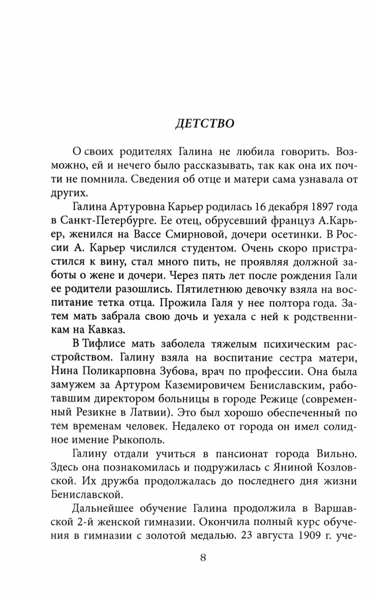 Летом 1925 года перед женитьбой поэта на С. А. Толстой между ними произошел разрыв. Галина тяжело переживала это, лечилась от нервного расстройства, на время уезжала из Москвы. А в декабре 1926 года покончила с собой на могиле Есенина на Ваганьковском кладбище, оставив записку: "3 декабря 1926 года. Самоубилась здесь, хотя и знаю, что после этого еще больше собак будут вешать на Есенина... Но и ему, и мне это все равно. В этой могиле для меня все самое дорогое...".