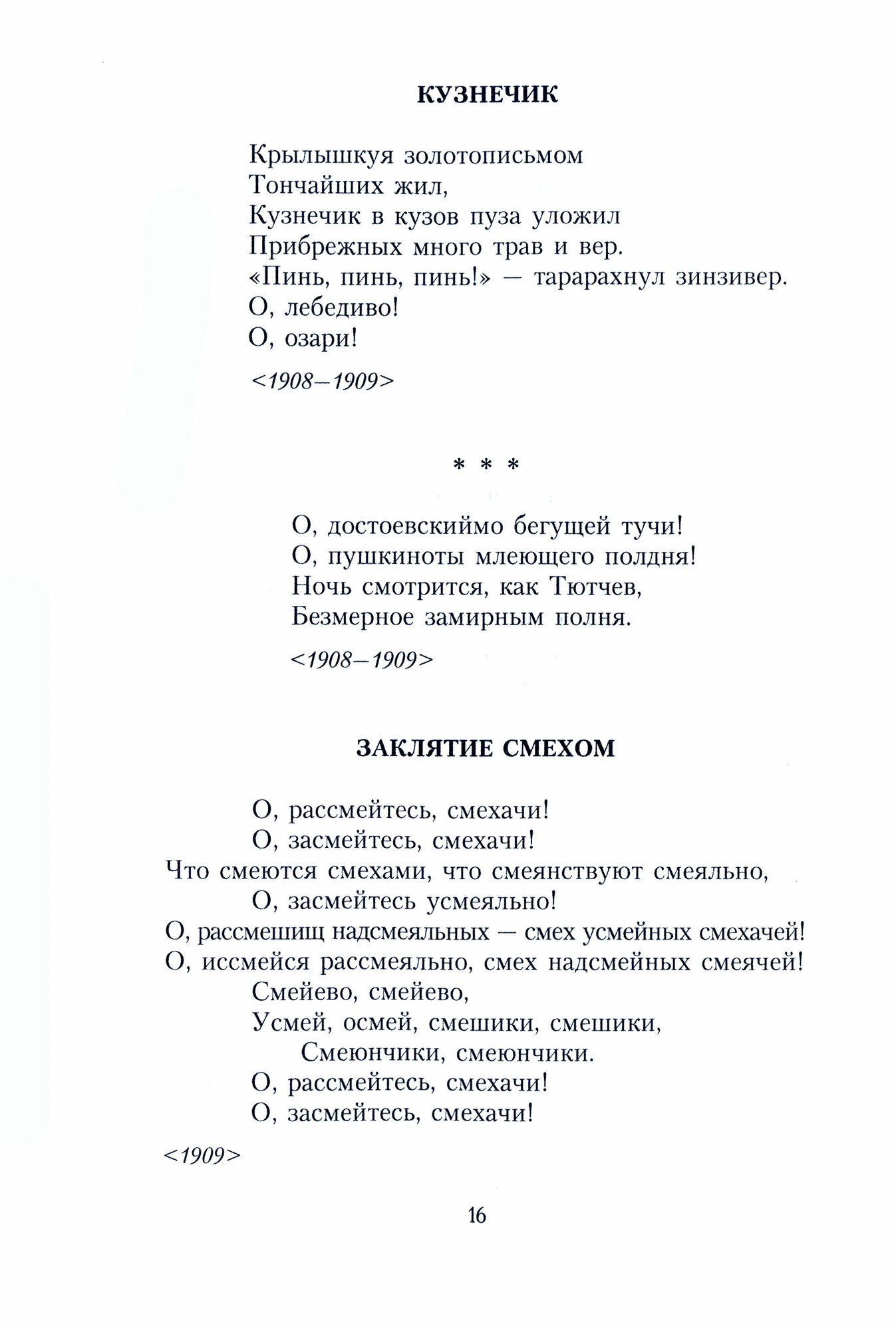 Велимир Хлебников (1885–1922) - поэт и прозаик Серебряного века, реформатор поэтического языка, один из основоположников русского футуризма, экспериментатор в области словотворчества и зауми. Одновременно с занятиями литературой Хлебников увлекался точными и естественными науками; отсюда - его стремление к словотворчеству и мечты о создании мирового языка. Маяковский писал, что Хлебников создал целую "периодическую систему слова".