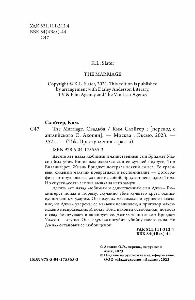 Книга: The Marriage. Свадьба (Ким Слэйтер); Эксмо, Inspiria, Редакция 1, 2023