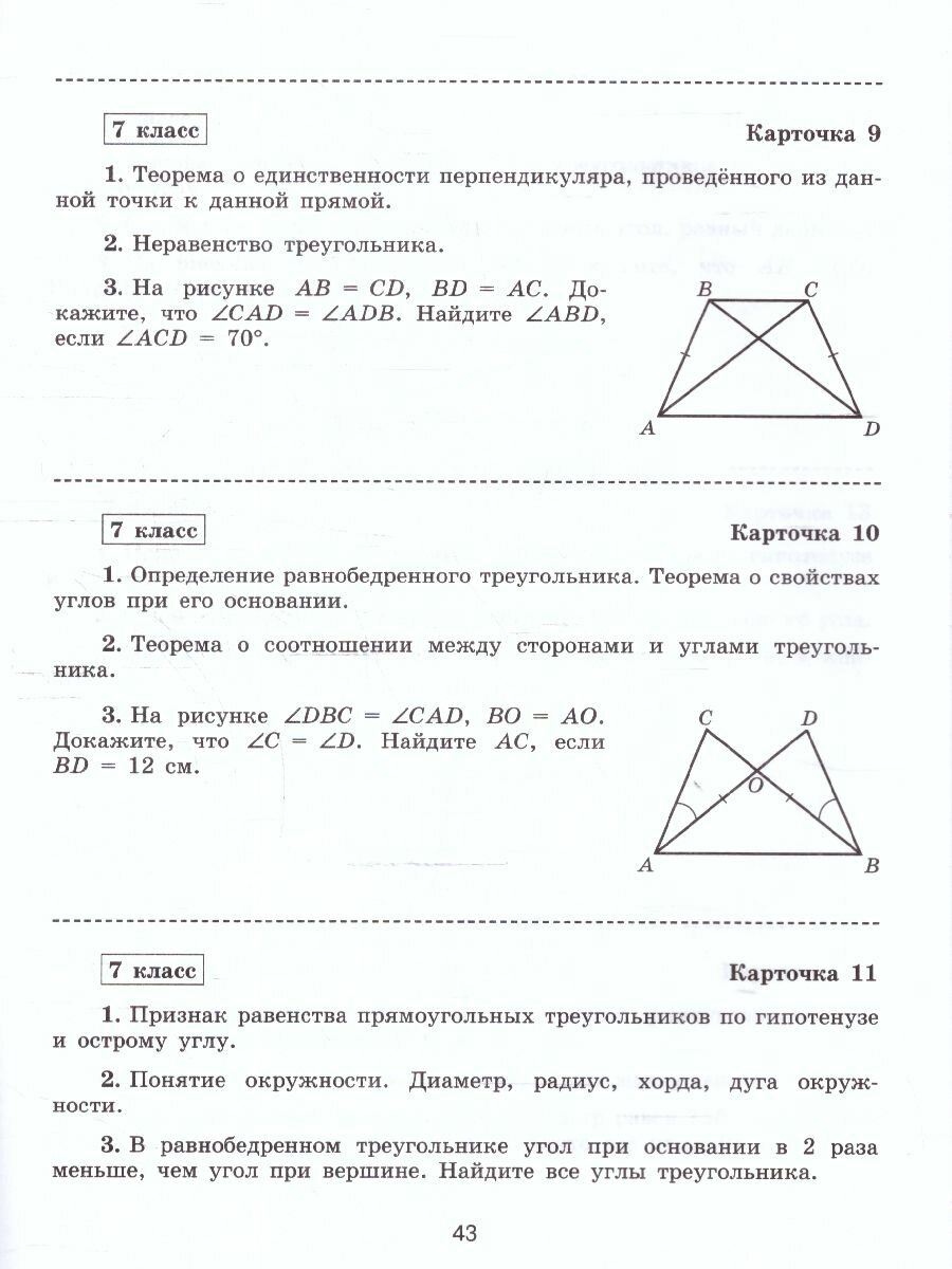 Учебное пособие содержит самостоятельные и контрольные работы, а также карточки к итоговым зачётам по курсу геометрии 7 класса. Оно ориентировано на учебник ? Математика. Геометрия. 7-9 классы" авторов Л. С. Атанасяна и др., вошедший в Федеральный перечень учебников в соответствии с Приказом Министерства просвещения Российской Федерации № 858 от 21.09.2022 г.