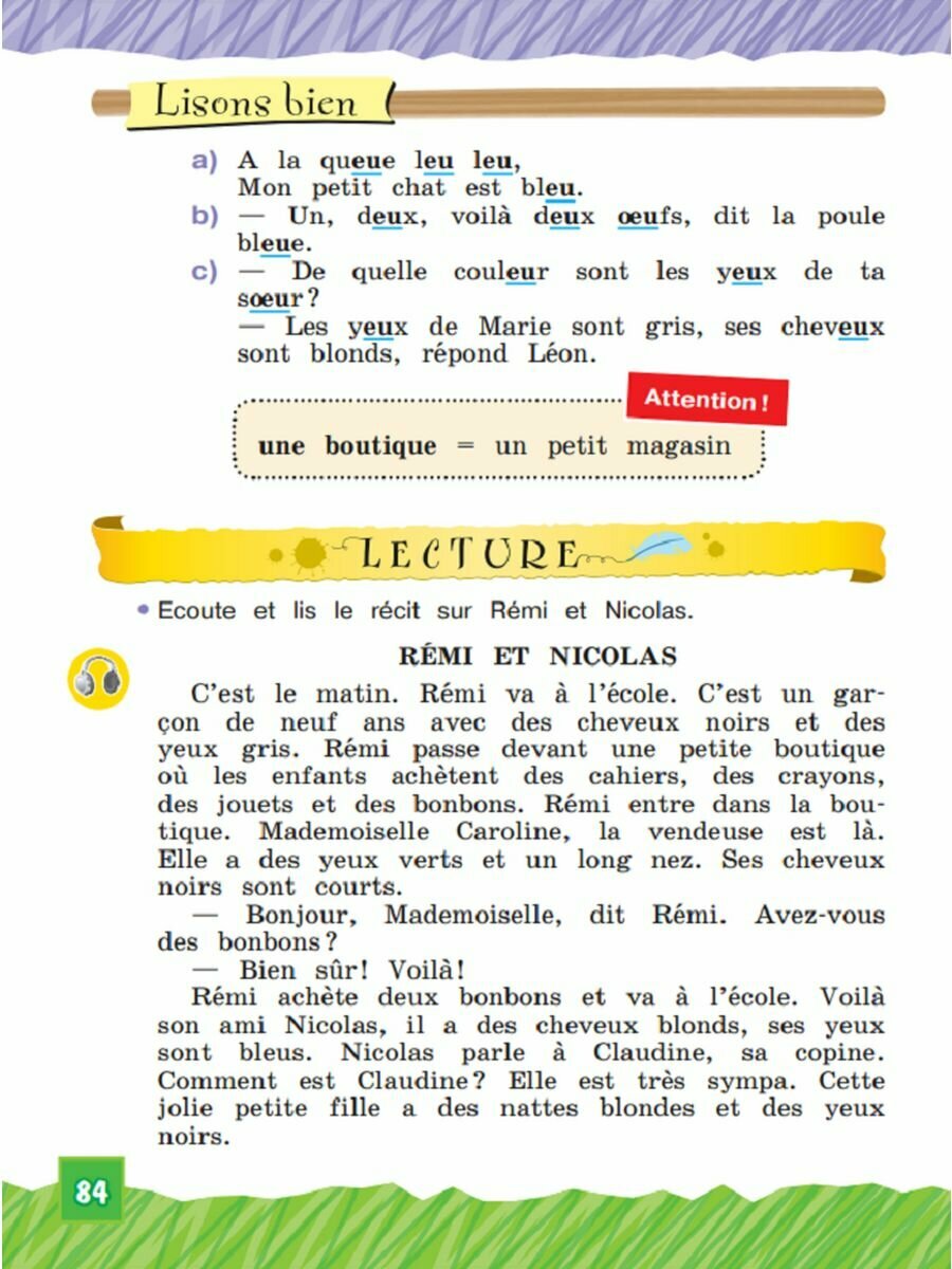 Содержание данного учебника обеспечивает достижение развивающих и образовательных целей обучения на начальном этапе, даёт возможность развития коммуникативно-игровых способностей учащихся, является основой для формирования интереса к культуре Франции.