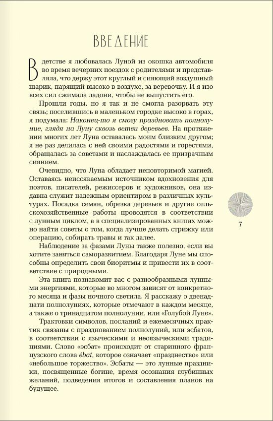Как переводчик этой книги хочу поделиться своими впечатлениями. Это своеобразный лунный календарь, в котором главное внимание уделяется не фазам Луны, как это обычно бывает с календарями, а языческим лунным циклам на протяжении всего года, включая 13-й лунный месяц.