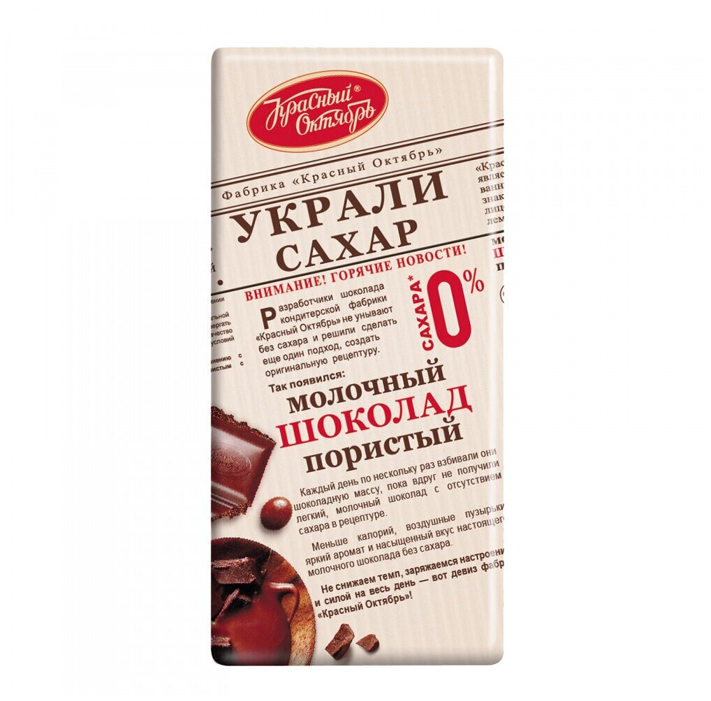 Шоколад Красный Октябрь Украли сахар Молочный пористый без сахара 90г