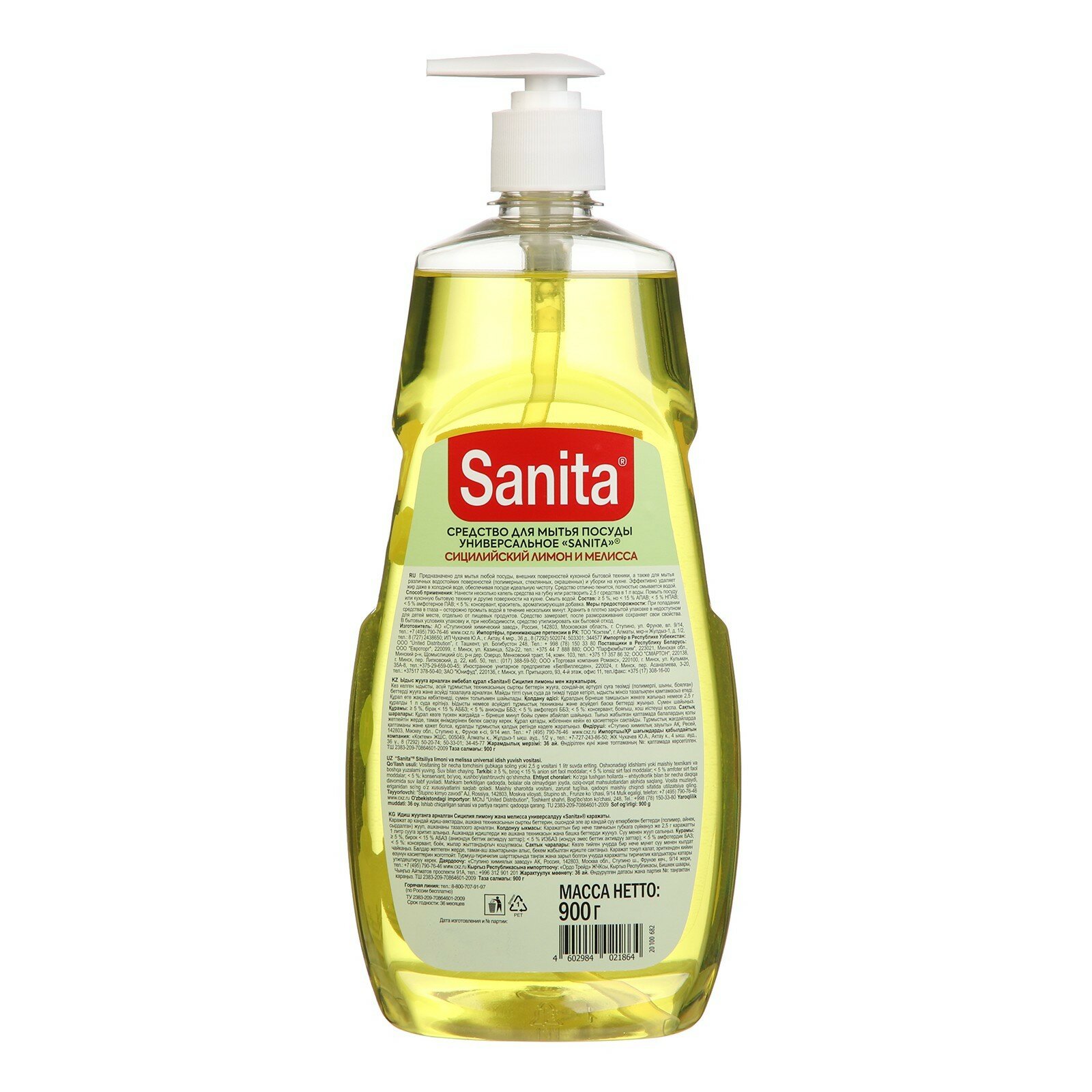 Средство для мытья посуды Sanita Сицилийский лимон и мелисса 900г Ступинский химический завод