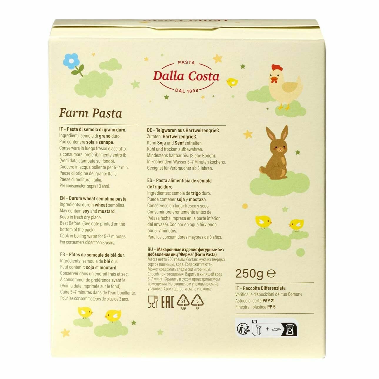 Макаронные изделия DALLA COSTA фигурные без добавления яиц «Ферма» Farm pasta 250г - это высококачественный продукт, который станет отличным выбором для любителей макаронных изделий.Макароны изготовлены из твердых сортов пшеницы, что обеспечивает их прочность и устойчивость к развариванию. Благодаря этому, они сохраняют свою форму и вкус даже после приготовления.Продукт не содержит ГМО, яиц и консервантов, что делает его безопасным для здоровья и экологически чистым.Макароны упакованы в картонную коробку, что обеспечивает удобство хранения и транспортировки.В сухом месте.Не содержит ГМО.Не содержит яиц.Не содержит консервантов.Макароны из твердых сортов пшеницы.Фигурная форма.Упаковка в картонной коробке.Макаронные изделия DALLA COSTA фигурные без добавления яиц «Ферма» Farm pasta 250г станут отличным выбором для тех, кто ценит качество, вкус и безопасность продуктов.