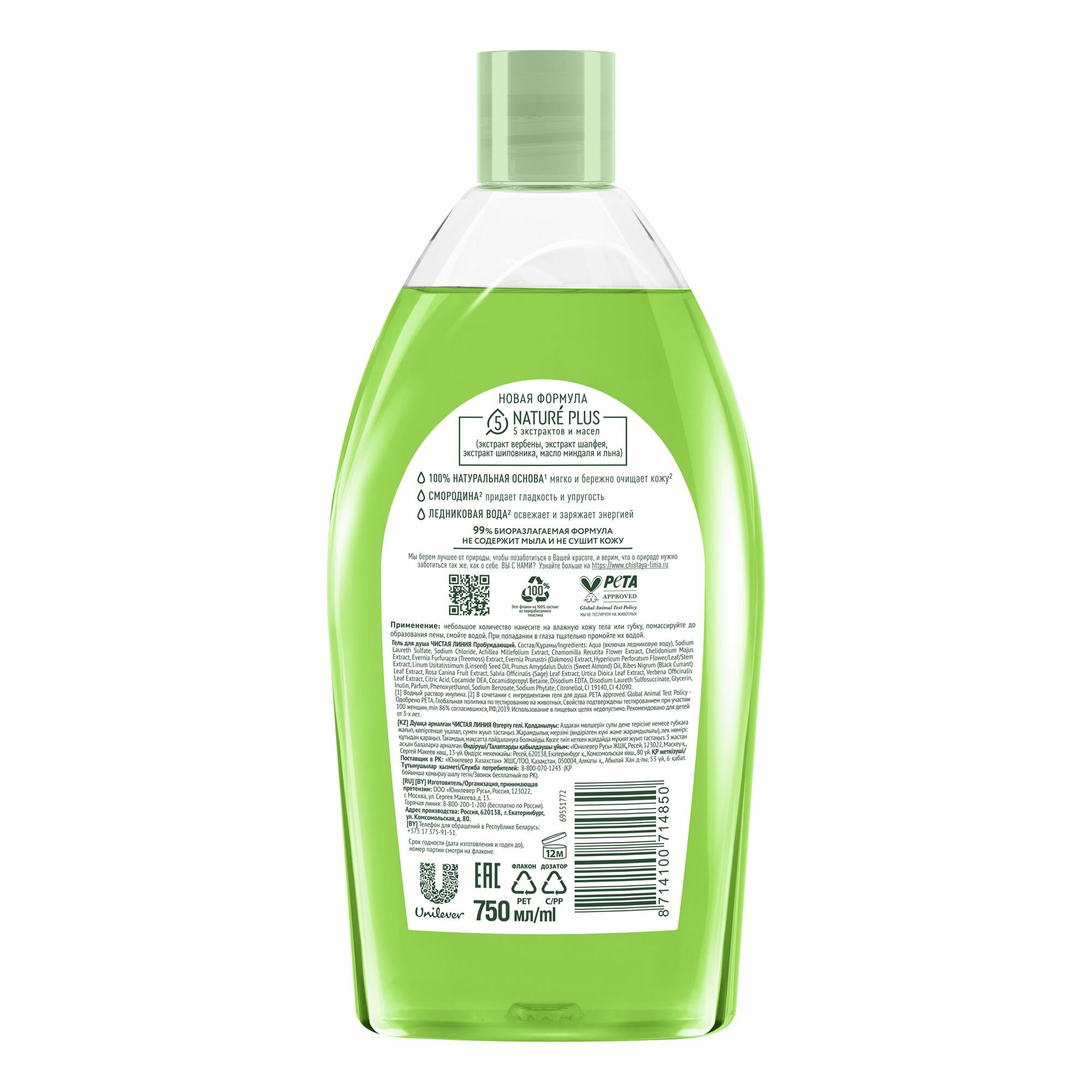 Гель для душа Чистая Линия Пробуждающий для всей семьи на натуральной основе смородина и ледниковая вода 750мл Unilever