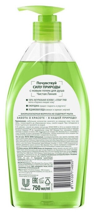 Сервис сравнения цен СкидкаГИД предлагает сравнить цены на товар «Гель для душа Чистая Линия Пробуждающий для всей семьи на натуральной основе смородина и ледниковая вода 750мл Unilever»