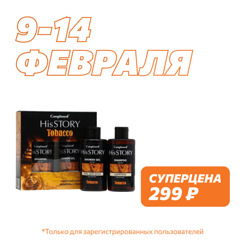 Сервис сравнения цен СкидкаГИД предлагает сравнить цены на товар «Набор подарочный Compliment HisStory Tobacco для мужчин Шампунь 320мл и Гель для душа 320мл СТЕЛЛА»