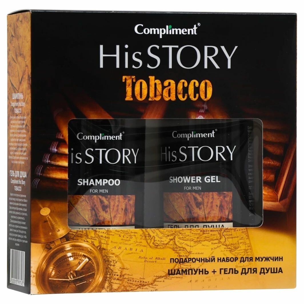 Набор подарочный Compliment HisStory Tobacco для мужчин Шампунь 320мл и Гель для душа 320мл СТЕЛЛА