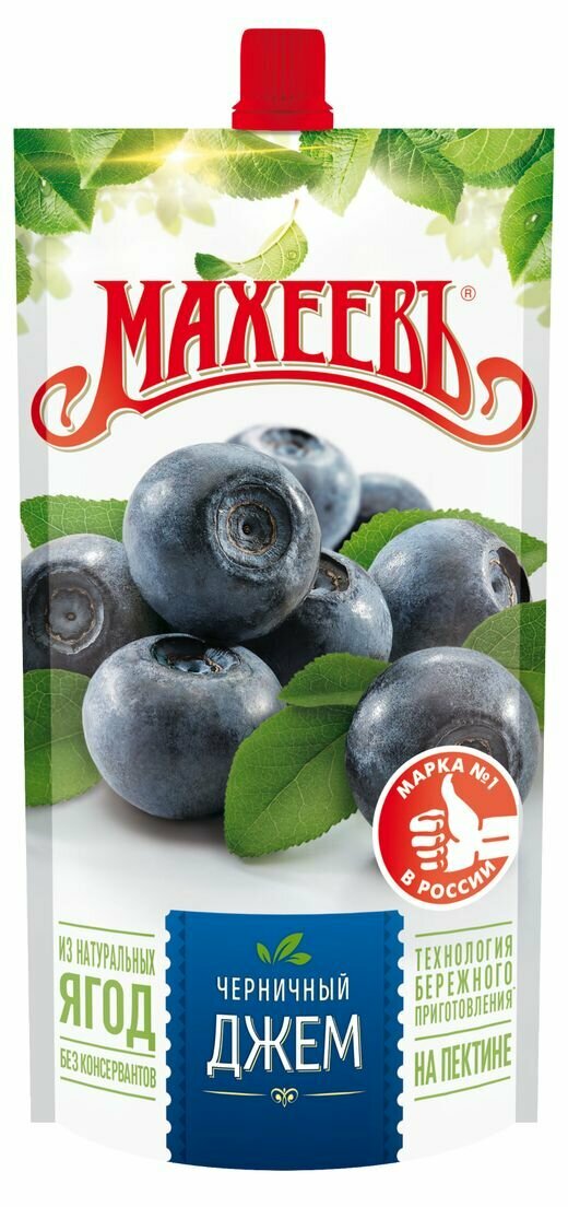 Джем Махеевъ Черничный отличается нежным, в меру сладким, ягодным вкусом и ароматом, известен своими полезными свойствами для глаз.