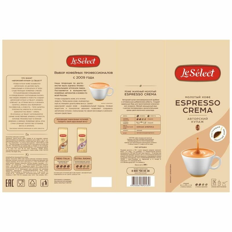 Кофе молотый Le Select Espresso Crema 200г Глобалфудкомпани