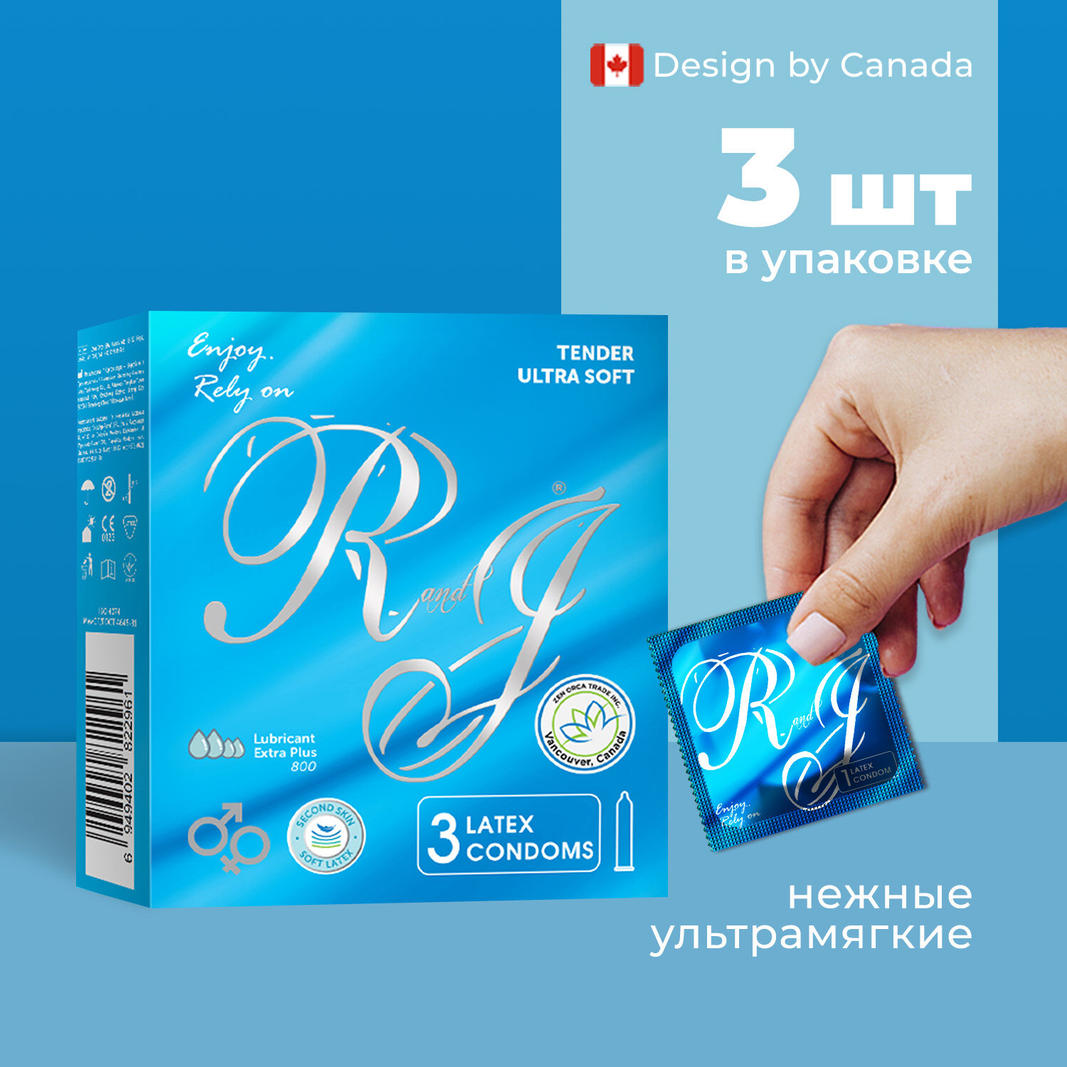 Презервативы из натурального латекса R and J Tender ультрамягкие, 3 шт в упаковке.Классические. Очень увлажненные. Очень обильная смазка +++. Диаметр: 52+-2 mm; Длина: 180+-10 mm; Толщина: 0.06+-0.01 mm. При производстве презервативов "R and J" используется технология "Thin Technology". Используется более мягкий латекс. Это позволяет получать чувственные ощущения во время секса. При одевании нужно аккуратно придерживать уплотняющее кольцо, мягко, без спешки, аккуратненько надеть презерватив. Вскройте фольгированную упаковку и достаньте презерватив. Используйте по назначению в соответствии с вложенной в упаковку инструкцией.