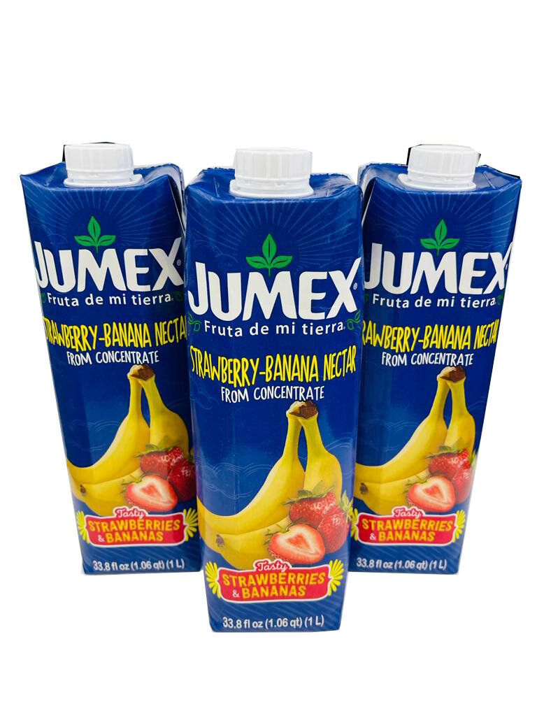 Необычное сочетание клубники и банана подарит нектар Jumex Nectar Strawberry-Banana. Данный продукт произведен на основе свежевыжатых бананового и клубничного пюре с добавлением очищенной воды и натуральных ароматизаторов. Полезные свойства ингредиентов сохраняет технологичная упаковка с удобной крышкой.
