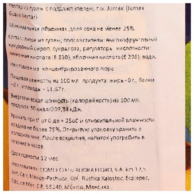 Jumex Нектар из гуавы 1л Comercializadora Eloro S.A.