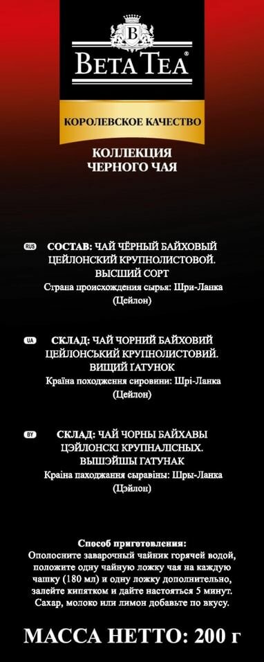 Чай черный Beta Tea Премиум Опа 200г Бета Гида