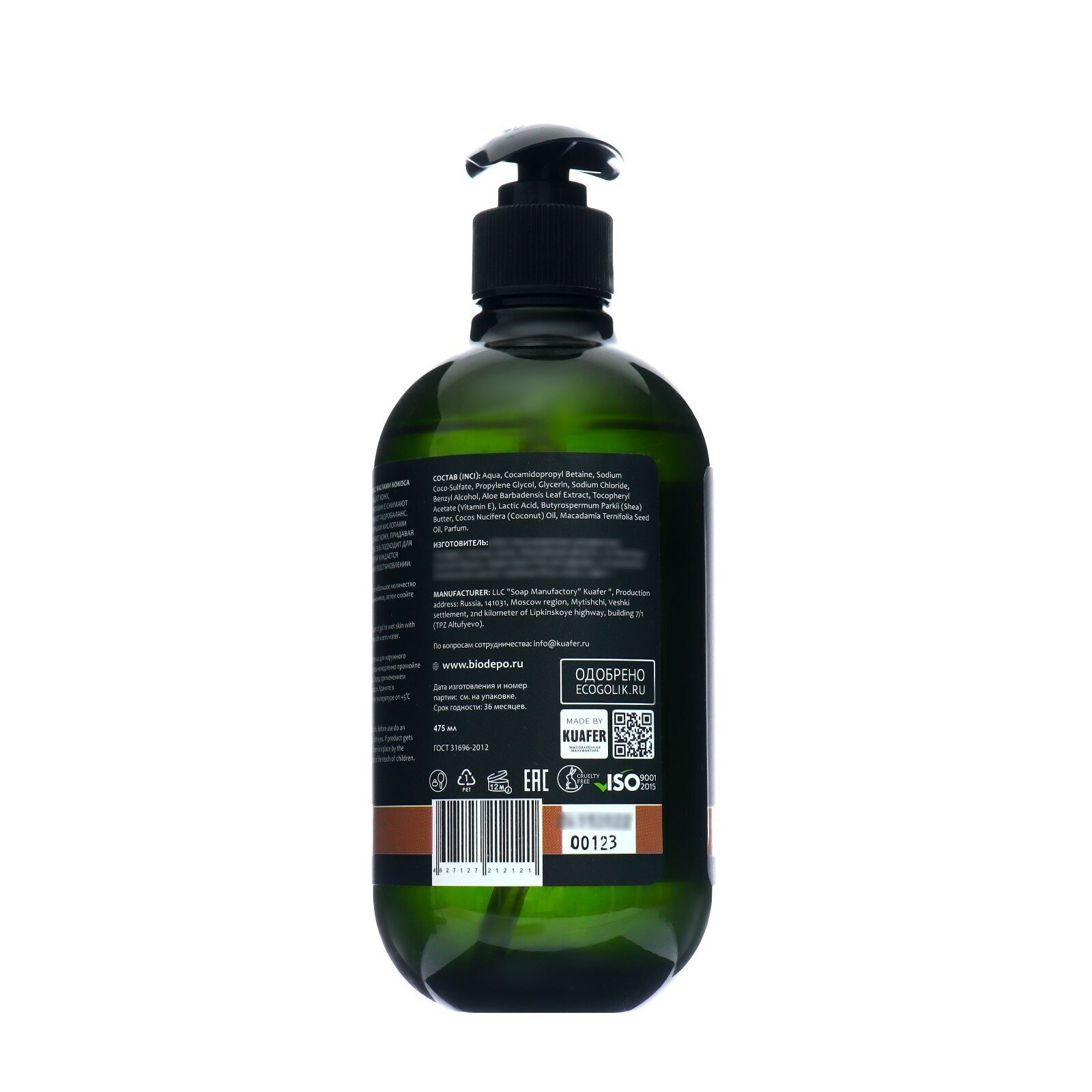Гель для душа Biodepo с маслами кокоса и макадамии 475мл Куафёр
