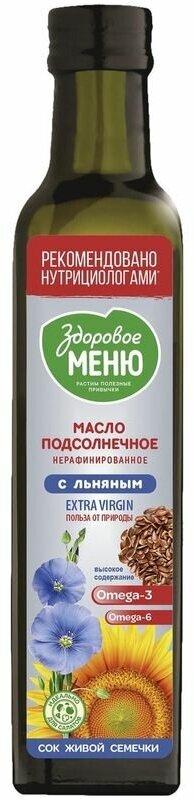 Масло подсолнечное Здоровое меню нерафинированное с добавлением льняного 250мл Союзпищепром