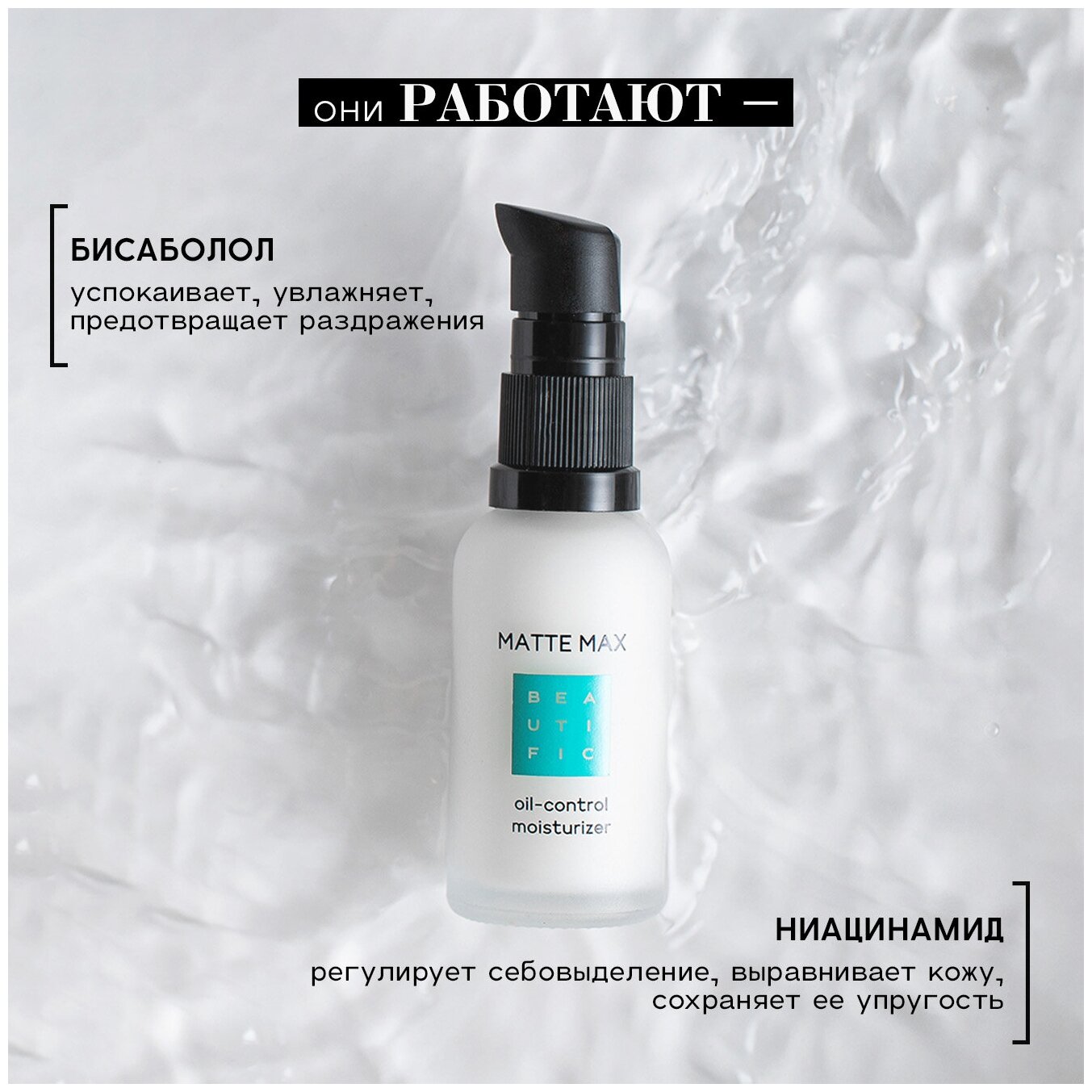 Скажи "Стоп!" жирному блеску на лице с ультра-эффективным матирующим флюидом Beautific MATTE MAX. Легкая формула крем-геля без масел эффективно матирует кожу на весь день, оставляя твоей коже ощущение 100% увлажненности и комфорта. Ниацинамид и бисаболол в составе флюида уменьшают воспаления, балансируют и грамотно регулируют выработку кожного жира. Благодаря добавлению микросфер натуральной слюды гель минимизирует и "ретуширует" поры, обеспечивая мгновенный эффект "фотошопа" на твоем лице даже без макияжа. Некомедогенно, не забивает поры, не пересушивает и не стягивает кожу.