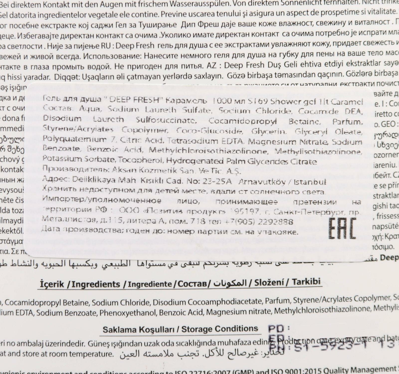 Сервис сравнения цен СкидкаГИД предлагает сравнить цены на товар «Гель для душа Deep Fresh Карамель 1л Аksan Kozmetik»