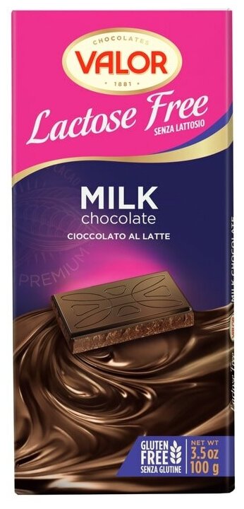 Valor Chocolates предлагает Вам попробовать молочный шоколад без лактозы, который идеально подходит для веганов и людей с непереносимостью лактозы. Он готовится с добавлением безлактозного молока и ничем не отличается по вкусу от обыкновенного молочного шоколада благодаря своей рецептуре. Оцените вкусную и полезную для здоровья новинку от Valor!