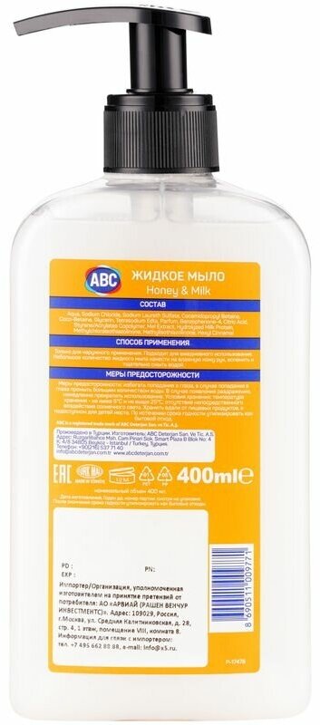 | Состав набора | Мыло жидкое ABC Honey & Milk 400 мл |