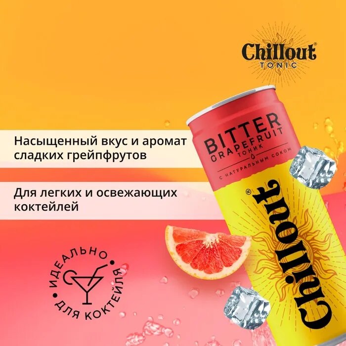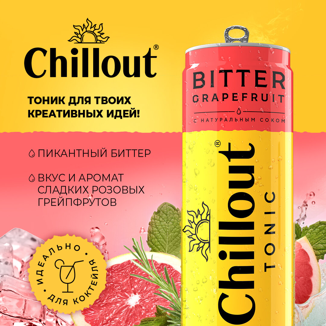 Вкус Chillout Bitter Grapefruit – характеризуется богатой глубиной вкуса тоника, с бархатным привкусом сока грейпфрута и роскошной консистенцией.