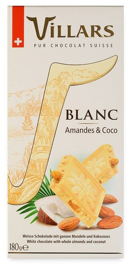 Шоколад Villars Белый с цельным миндалем и карамелизованным кокосом 180г