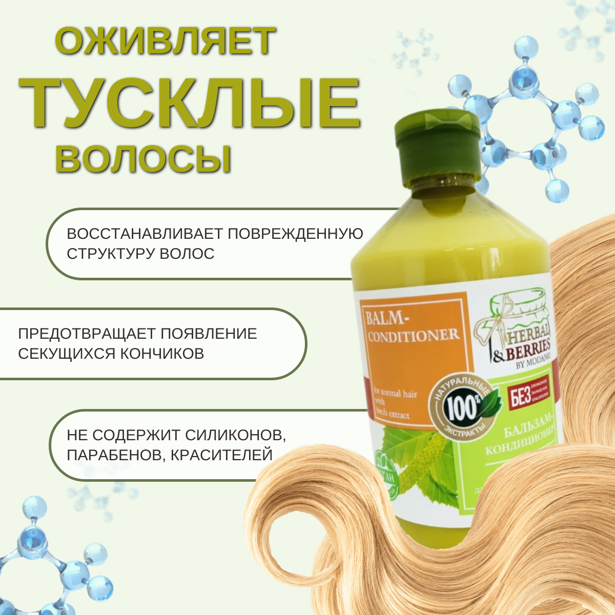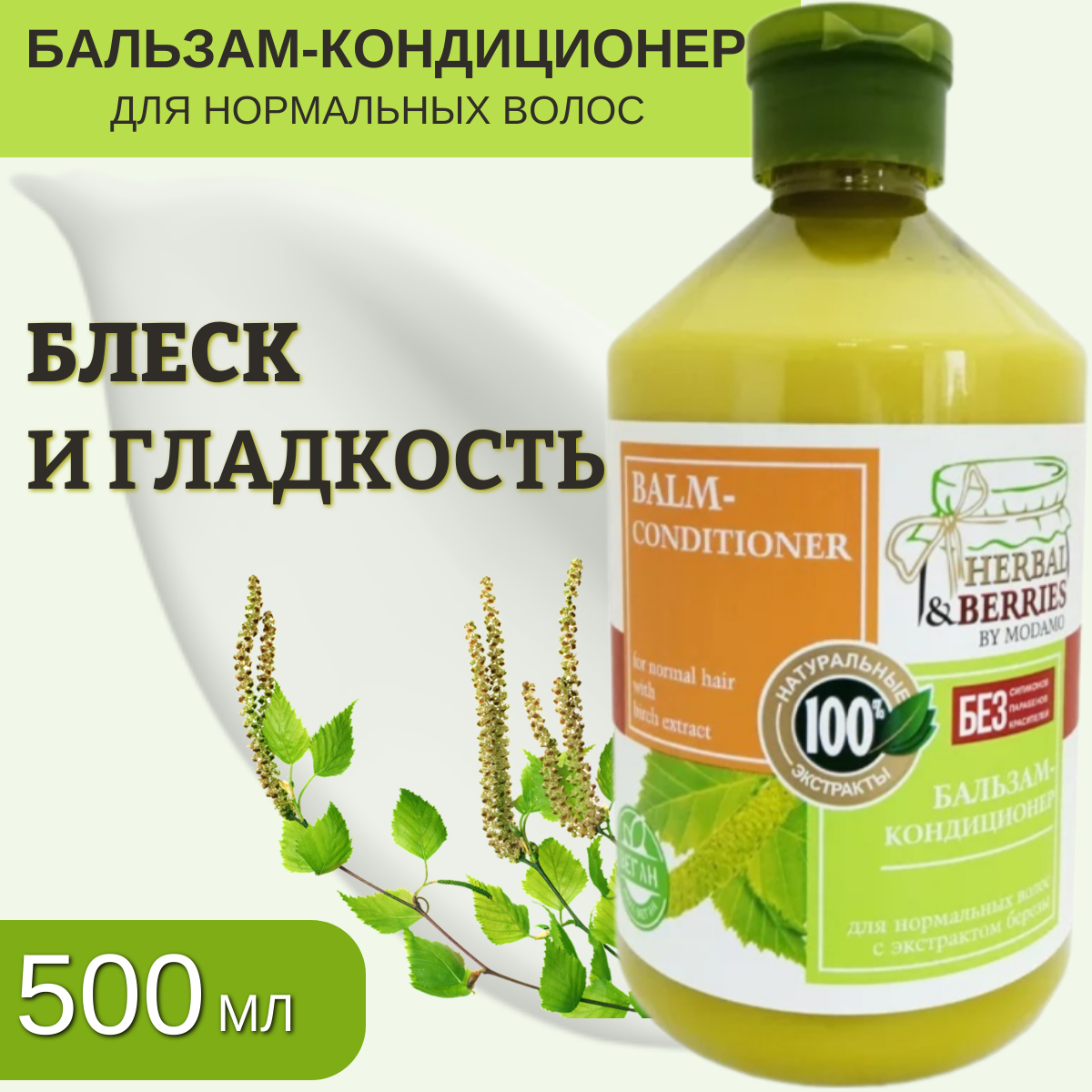 Бальзам-кондиционер Herbal&Berries by Modamo для нормальных волос с экстрактом березы 500мл Саната