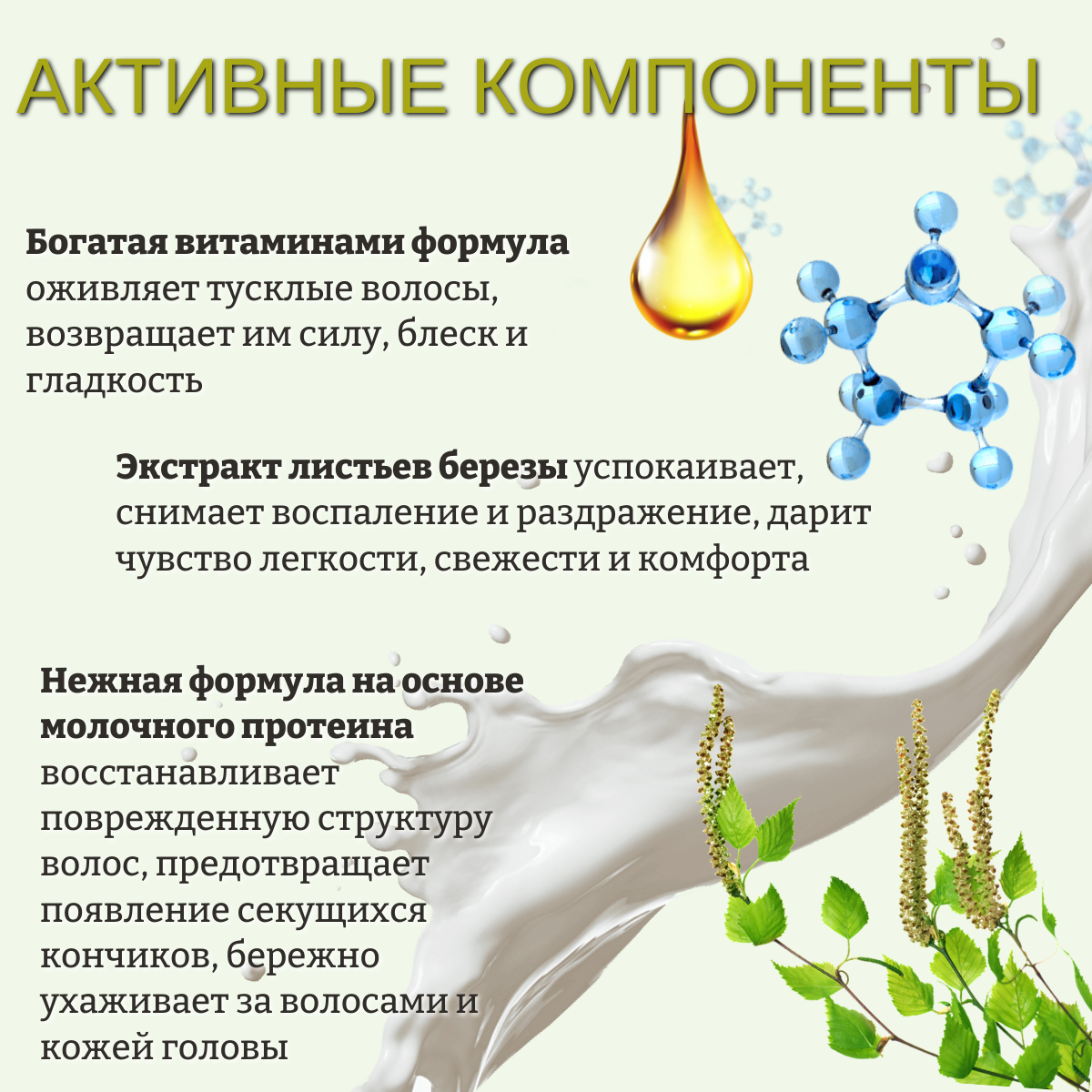 Поддержите здоровье и красоту своих волос с бальзамом-кондиционером, обогащенным экстрактом березы. Богатая витаминами формула оживляет тусклые волосы, возвращает им силу, блеск и гладкость. Нежная формула на основе молочного протеина восстанавливает поврежденную структуру волос, предотвращает появление секущихся кончиков, бережно ухаживает за волосами и кожей головы. Экстракт листьев березы успокаивает, снимает воспаление и раздражение, дарит чувство легкости, свежести и комфорта. Не содержит силиконов, парабенов, красителей.