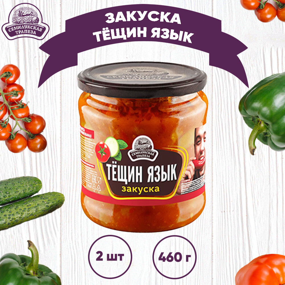 На сегодняшний день товар «Закуска Семилукская Трапеза Тещин язык 460г Тёщин язык» можно купить с кешбеком в 2 магазинах: Vprok (Перекресток), Яндекс.Маркет