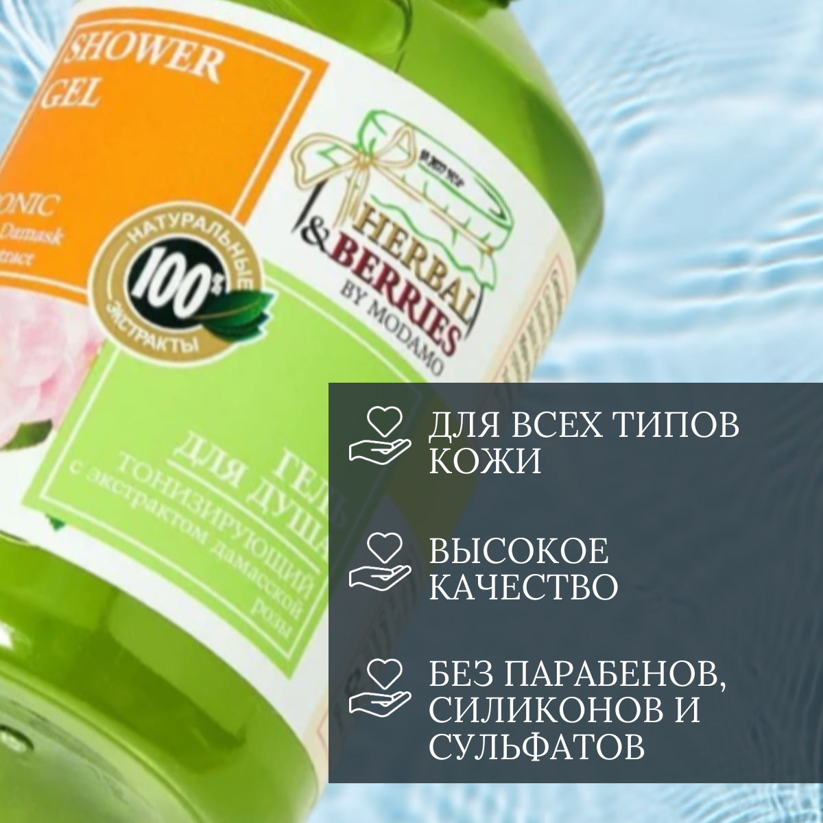 Гель для душа Herbal&Berries by Modamo Тонизирующий с экстрактом дамасской розы 500мл Саната