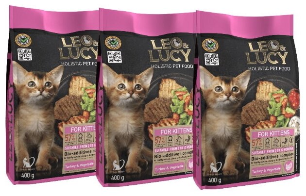 Сухой корм для котят Leo&Lucy с индейкой овощами и биодобавками 400г Прорацион