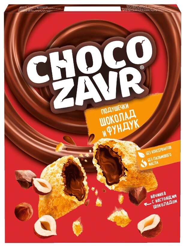 Хрустящие подушечки с нежной шоколадно-ореховой начинкой. Мультизлаковый состав без консервантов и пальмового масла делает этот готовый завтрак невероятно питательным, а тающая начинка – потрясающе вкусным!