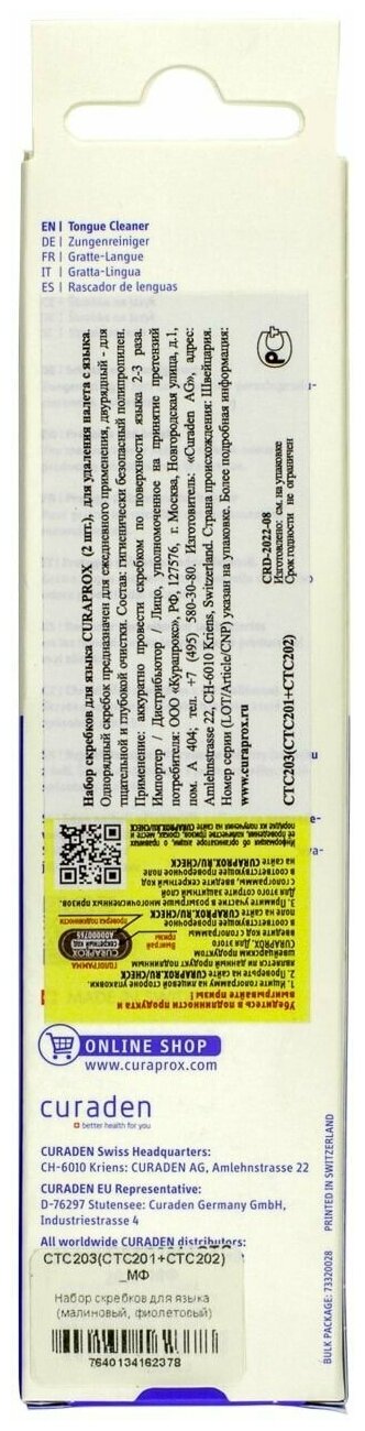 | Полное наименование | Набор скребков для языка Curaprox 2 шт |