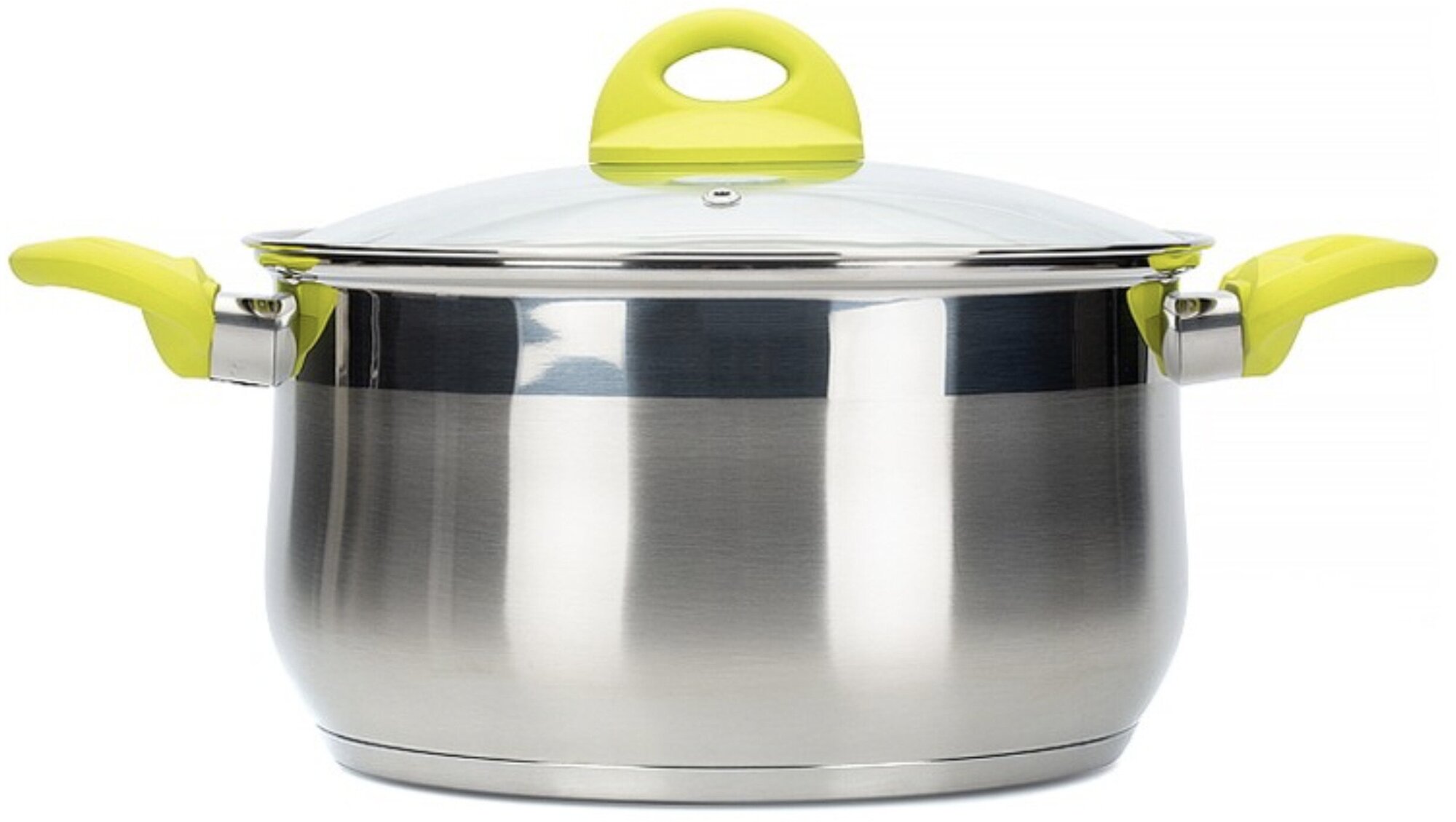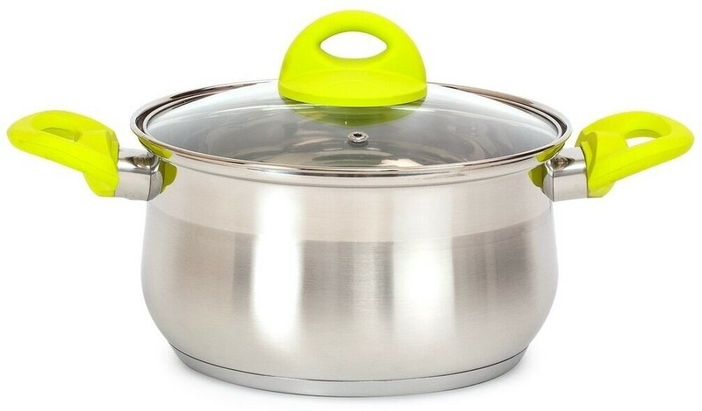 Набор посуды издвух кастрюль с крышками. Эргономичные ручки из силикона не скользят и не нагреваются. Можно мыть в посудомоечной машине.